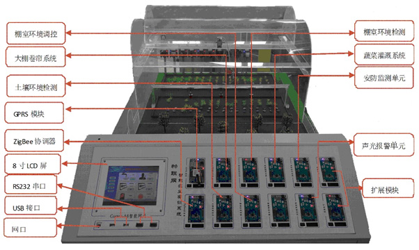 系統(tǒng)實現(xiàn)了農(nóng)作物生長環(huán)境信息(包括二氧化碳、光照度、溫濕度和土壤參數(shù)等)采集和控制響應(yīng)、灌溉系統(tǒng)控制、數(shù)據(jù)計算和管理等功能,并支持遠(yuǎn)程WEB、移動手持設(shè)備訪問和控制等。使學(xué)生在實訓(xùn)過程中深入的理解物聯(lián)網(wǎng)相關(guān)技術(shù),在現(xiàn)代農(nóng)業(yè)領(lǐng)域中應(yīng)用的方法和過程等諸多環(huán)節(jié),激發(fā)學(xué)習(xí)興趣,并通過系統(tǒng)開放式的環(huán)境,自己動手實現(xiàn)學(xué)習(xí)、創(chuàng)新及應(yīng)用。