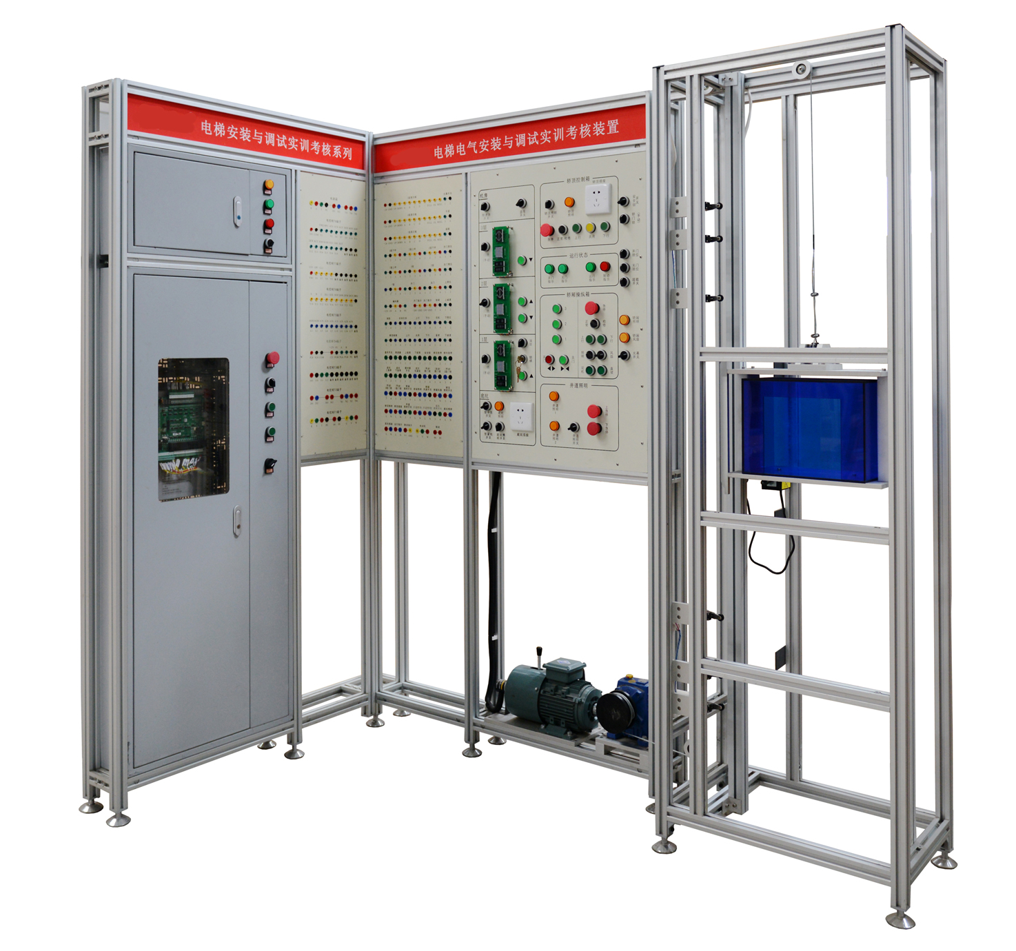一、裝置概述 ZY-DTDQ02型 電梯電氣安裝調(diào)試實訓考核裝置是根據(jù)當前真實電梯的電氣安調(diào)和維保需求而開發(fā)的一種電氣實訓考核平臺,適合各職業(yè)院校、技工類學校的樓宇自動化、機電自動化等電梯相關(guān)專業(yè)及職業(yè)資格鑒定中心和培訓考核機構(gòu)使用。 ZY-DTDQ02型 電梯電氣安裝調(diào)試實訓考核裝置采用真實的電梯總電源箱和微機控制柜成套機房設(shè)備,曳引機組及三層井道電氣器件均采用模擬型式,學生借助電梯電氣圖對這兩部分進行安全型插線連接,通過模擬運行檢驗連接的正確性,排除出現(xiàn)的故障,使學生能夠通過實訓初步掌握電梯電氣原理與規(guī)范標準、連接、調(diào)試、運行及維修技能,為真實電梯電氣的安調(diào)與維保打下基礎(chǔ)。 二、裝置特點 1、電梯電氣安裝調(diào)試實訓考核裝置采用了“L”形支架結(jié)構(gòu)能夠減少占地面積,同時多臺并排布置時能夠形成實訓室工位式布局; 2、采用了真實的電梯總電源箱和微機控制柜,使學生學到的與實際應(yīng)用的一致; 3、電梯電氣安裝調(diào)試實訓考核裝置采用了模擬器件嵌入電梯井道結(jié)構(gòu)圖形的形式,使調(diào)試運行過程更加簡單直觀; 4、采用了高絕緣的安全型插座與帶絕緣護套的高強度安全型插線,可區(qū)分強、弱電流的不同規(guī)格的插座與插線,確保操作人員的安全。 三、主要技術(shù)指標 1、電源輸入:三相五線AC380V50Hz; 2、安全保護:接地,漏電(動作電流≤30mA),過壓,過載,短路; 3、整機功耗:≤0.75KW; 4、整機重量:≤150KG; 5、外形尺寸:1600mm×1150mm×2100mm(長×寬×高)。 四、配置清單 五、配套工具清單ZY-DTDQ02型 電梯電氣安裝調(diào)試實訓考核裝置