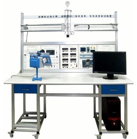 ZY-TG02型 小型模擬太陽(yáng)升降、太陽(yáng)跟蹤、光伏發(fā)電、充電逆變實(shí)訓(xùn)裝置用200W節(jié)能燈模擬太陽(yáng),模擬太陽(yáng)可以左右移動(dòng)1180mm,上下620mm到810mm米之間,模擬太陽(yáng)的弧線升降的全過(guò)程,而且模擬太陽(yáng)升降的時(shí)間可以根據(jù)實(shí)驗(yàn)需要來(lái)改變的新能源教學(xué)設(shè)備。太陽(yáng)跟蹤系統(tǒng)對(duì)模擬太陽(yáng)的移動(dòng)進(jìn)行跟蹤,太陽(yáng)跟蹤系統(tǒng)上的光伏發(fā)電裝置在模擬太陽(yáng)光下發(fā)電,并對(duì)蓄電池進(jìn)行充電,逆變裝置對(duì)蓄電池的直流電進(jìn)行逆變,產(chǎn)生220V交流電,并給負(fù)載供電。 一、太陽(yáng)能光伏發(fā)電實(shí)驗(yàn)設(shè)備技術(shù)參數(shù):ZY-TG02型 小型模擬太陽(yáng)升降太陽(yáng)跟蹤光伏發(fā)電充電逆變實(shí)訓(xùn)裝置