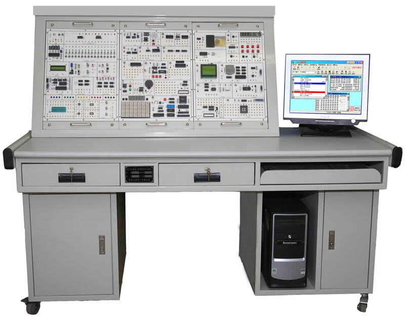 一、系統(tǒng)組成: 該實(shí)驗(yàn)裝置是由控制屏、內(nèi)置直流穩(wěn)壓電源、漏電斷路器等組成,控制屏有兩大塊的雙面印刷線路板組成。 二、系統(tǒng)特點(diǎn): 1、是集51、96、8088(以下簡(jiǎn)稱(chēng)88)三大系列CPU于一體的三合一實(shí)驗(yàn)系統(tǒng)。內(nèi)置JD-208仿真器(5196)和8088實(shí)驗(yàn)系統(tǒng)。該系統(tǒng)以8088實(shí)驗(yàn)系統(tǒng)作為基板,自成一體,可單獨(dú)作為8086微機(jī)原理和接口實(shí)驗(yàn)使用,也可分別疊插51或96CPU卡,構(gòu)成51/96單片機(jī)實(shí)驗(yàn)開(kāi)發(fā)系統(tǒng),598系統(tǒng)結(jié)構(gòu)緊湊,資源充分共享,無(wú)總線開(kāi)關(guān)切換,自動(dòng)識(shí)別CPU的類(lèi)型。 2、實(shí)驗(yàn)系統(tǒng)軟、硬件配置完善,仿真軟件支持Win98/2000/XP等操作系統(tǒng),并支持匯編語(yǔ)言和C語(yǔ)言的開(kāi)發(fā),實(shí)驗(yàn)內(nèi)容豐富,是單片機(jī)、微機(jī)原理和接口教學(xué)的理想平臺(tái)。 3、598同時(shí)配置EDA下載板和相應(yīng)IO接口,支持altera、lattice、xilinx三家公司CPLD/FPGA芯片實(shí)驗(yàn)開(kāi)發(fā)。 4、提供多種總線類(lèi)型的實(shí)驗(yàn)?zāi)K,包括并行總線、RS232總線、RS485總線、I2C總線、SPI串行總線、USB總線、CAN總線、1-WIRE總線和以太網(wǎng)接口,可調(diào)試新型外圍接口芯片有:I2C串行RAM AT24C02、I2C串行實(shí)時(shí)時(shí)鐘PCF8563T、I2C串行10位D/A TL5615、8位A/D TL549、1-WIRE總線數(shù)字溫度傳感器DS 18B20、RS232芯片MAX232、MAX485、CAN總線控制器SJA1000、CAN總線收發(fā)器TJA1050T、網(wǎng)絡(luò)芯片RTL8019AS、看門(mén)狗電路MAX813L。 5、提供多種輸入/輸出設(shè)備,包括字符式1602 LCD、128X64點(diǎn)陣LCD、16X16LED點(diǎn)陣、4X6開(kāi)放式鍵盤(pán)、6位開(kāi)放式數(shù)碼管、IC卡、步進(jìn)電機(jī)、小直流電機(jī)、小直流電機(jī)、繼電器、語(yǔ)音錄放(含話筒、喇叭)、打印機(jī)接口、小直流電機(jī)閉環(huán)控制、溫度閉環(huán)控制等。 6、學(xué)生可通過(guò)實(shí)驗(yàn)臺(tái)內(nèi)置的仿真器聯(lián)PC機(jī)調(diào)試、運(yùn)行所有的實(shí)驗(yàn)程序,也可不聯(lián)PC機(jī)獨(dú)立運(yùn)行。 三、 實(shí)驗(yàn)項(xiàng)目: (一)單片機(jī)內(nèi)部功能實(shí)驗(yàn): 1、單片機(jī)內(nèi)部定時(shí)/計(jì)數(shù)器實(shí)驗(yàn)(脈沖計(jì)數(shù)) 2、單片機(jī)內(nèi)部定時(shí)/計(jì)數(shù)器實(shí)驗(yàn)、中斷控制綜合實(shí)驗(yàn)(電腦 時(shí)鐘) 3、單片機(jī)串行口實(shí)驗(yàn)—雙機(jī)通信 4、單片機(jī)串行口實(shí)驗(yàn)—單片機(jī)與電腦聯(lián)機(jī)通信實(shí)驗(yàn) 5、單片機(jī)I/O口實(shí)驗(yàn) 6、單片機(jī)ISP最小系統(tǒng)實(shí)驗(yàn)和看門(mén)狗實(shí)驗(yàn) 8、串并轉(zhuǎn)換(7 4 L S 1 6 4),擴(kuò)展2位七段LED實(shí)驗(yàn) 9、并串轉(zhuǎn)換(7 4 L S 1 6 5)實(shí)驗(yàn) 10、v/F轉(zhuǎn)換實(shí)驗(yàn) (二)單片機(jī)、微機(jī)常用接口與應(yīng)用實(shí)驗(yàn) 11、8位8路A/D轉(zhuǎn)換ADC 0 8 0 9實(shí)驗(yàn) 12、8位1路D/A轉(zhuǎn)換D A C 0 8 3 2實(shí)驗(yàn) 13、定時(shí)/計(jì)數(shù)器8 2 5 3 A實(shí)驗(yàn) 14、串行通信接口控制電路8 2 5 1/8250實(shí)驗(yàn) 15、I/O口(7 4 L S 2 7 3/7 4 L S 2 4 4)擴(kuò)展實(shí) 驗(yàn) 16、并行口擴(kuò)展實(shí)驗(yàn)8 2 5 5/8 1 5 5 17、地址譯碼(3一8譯碼器7 4 L S 1 3 8)實(shí)驗(yàn) 18, 8279鍵盤(pán)輸入、LED顯示輸出實(shí)驗(yàn) 19、打印機(jī)接口控制實(shí)驗(yàn)(打印機(jī)選配) 20、繼電器控制實(shí)驗(yàn) 21、音樂(lè)控制實(shí)驗(yàn) 22、語(yǔ)音錄放實(shí)驗(yàn) 23、步進(jìn)電機(jī)(4相)控制 24、十字路口交通燈模型控制實(shí)驗(yàn) 25 、16X16 LED點(diǎn)陣實(shí)驗(yàn) 26 、128X64 LCD點(diǎn)陣實(shí)驗(yàn) (三)單片機(jī)新型總線控制接口實(shí)驗(yàn) 27、I2C串行RAM24C02讀寫(xiě)實(shí)驗(yàn) 28、12C串行10位D/A T L 5615 D/A轉(zhuǎn)換實(shí)驗(yàn) 29、I2C串行8位A/D T L 549 A/D轉(zhuǎn)換實(shí)驗(yàn) 30、I2C串行實(shí)時(shí)時(shí)鐘PCF8563T應(yīng)用實(shí)驗(yàn) 31、I-WIRE總線數(shù)字溫度傳感器DS 18B20應(yīng)用實(shí)驗(yàn) 32, CAN控制器STA1000, CAN收發(fā)器TJA1050T應(yīng)用實(shí)驗(yàn) 33、以態(tài)網(wǎng)接口RTL8019AS應(yīng)用實(shí)驗(yàn) 34、RS232/485通信接口實(shí)驗(yàn) 35、USB總線接口實(shí)驗(yàn) ( 四)單片機(jī)、微機(jī)控制應(yīng)用小系統(tǒng)實(shí)驗(yàn) 36、直流電機(jī)閉環(huán)控制實(shí)驗(yàn) 37、溫度測(cè)量控制(PID調(diào)節(jié)閉環(huán)控制) (五)微機(jī)接口實(shí)驗(yàn) 38、8237DMA數(shù)據(jù)傳送實(shí)驗(yàn) 39、8259中斷控制器實(shí)驗(yàn) (六)可編程CPLD/FPGA應(yīng)用實(shí)驗(yàn) 基本實(shí)驗(yàn): (4)格雷碼變換器; (5)四位并行乘法器; (6)觸發(fā)器; (7)用ABEL語(yǔ)言設(shè)計(jì)74LS160功能模塊計(jì)數(shù)器; (8)多模加減計(jì)數(shù)器; (9)可控脈沖發(fā)生器; (10)簡(jiǎn)易數(shù)碼鎖; (11)英語(yǔ)字母顯示實(shí)驗(yàn); (12)八位乘法器; (13)序列檢測(cè)器; (14)可變模16位加法計(jì)數(shù)器; (15)正負(fù)脈沖數(shù)控調(diào)制發(fā)生器;(16)秒表。 (4)16*16 LED點(diǎn)陣顯示實(shí)驗(yàn); (5)電子時(shí)鐘實(shí)驗(yàn); (6)數(shù)碼