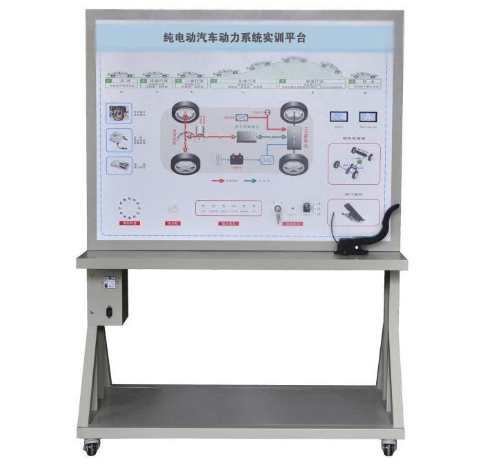 該設備由啟動開關、油門踏板、擋位開關、制動開關、數(shù)字轉(zhuǎn)速表、電流指示表等,并輔以發(fā)光二極管進行系統(tǒng)流向的動態(tài)指示,加速度傳感器、12V開關電源、大型彩色噴繪電路原理圖、控制面板、可移動臺架、使用操作手冊等。