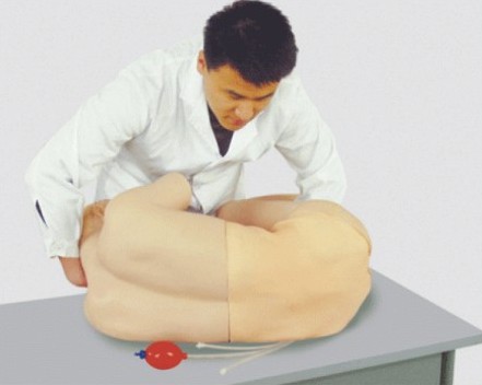 ■ 腰部可以活動(dòng),操作者需一手挽仿真病人頭部,另一手挽雙下肢腘窩處抱緊,使脊柱盡量后凸增寬椎間隙,才能完成穿刺。