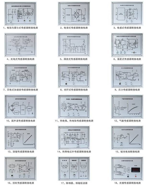 ZY-111A型檢測(cè)與轉(zhuǎn)換技術(shù)實(shí)訓(xùn)裝置 檢測(cè)與轉(zhuǎn)換(傳感器)技術(shù)實(shí)訓(xùn)裝置是北京中育聯(lián)合教學(xué)設(shè)備有限公司多年生產(chǎn)傳感器教學(xué)設(shè)備為基礎(chǔ),為適應(yīng)不同類別、不同層次的專業(yè)需要。推出了模塊化新產(chǎn)品。可完成“傳感器原理與應(yīng)用”、“自動(dòng)檢測(cè)技術(shù)”、“工業(yè)自動(dòng)化儀表與控制”、“非電量電測(cè)技術(shù)”、“傳 感器與測(cè)控技術(shù)”等課程的教學(xué)實(shí)驗(yàn)。為各高等院校、中專與職業(yè)技術(shù)學(xué)院等新建或擴(kuò)建實(shí)驗(yàn)室,迅速開設(shè)實(shí)驗(yàn)課提供了理想的實(shí)驗(yàn)室設(shè)備。(電腦自備) 主要技術(shù)與功能: 1、輸入電源:?jiǎn)蜗嗳AC220V±10% 50Hz 2、工作環(huán)境:溫度-10℃~+40℃ 3、相對(duì)濕度<85%(25℃) 海拔<4000m 4、裝置容量:<0.5kVA、 5、外型尺寸:1600×750×1100mm 6、實(shí)驗(yàn)臺(tái)提供四組直流穩(wěn)壓電源:±5V、±15V;±2V~±10V分五擋輸出,+2V~+24V可調(diào),具有短路保護(hù)功能。 7、低頻信號(hào)發(fā)生器:1Hz-30Hz輸出連續(xù)可調(diào),Vp-p值10V,最大輸出電流0.5A。 8、音頻信號(hào)發(fā)生器:0.4KHz-10KHz輸出連續(xù)可調(diào),輸出電壓范圍:0VP~10VP連續(xù)可調(diào),最大輸出電流:0.5A(有效值0.4KHz) 9、差動(dòng)放大器:通頻帶0-10KHz,可接成同相、反相、差動(dòng)結(jié)構(gòu),增益為1-150倍的直流放大器。 10、數(shù)字式電壓表:三位半顯示,量程±2V、±20V,輸入阻抗100KΩ,精度1%。 11、數(shù)字式頻率/轉(zhuǎn)速表:由四只數(shù)碼管,2只發(fā)光管組成,輸入阻抗100KΩ,精度1%。頻率測(cè)量范圍1-9999 Hz,轉(zhuǎn)速測(cè)量范圍1-9999rpm。 12、溫度表:0-150℃度,精度1%。 13、高精度溫度控制調(diào)節(jié)儀,多種輸入輸出規(guī)格,具有人工智能調(diào)節(jié)以參數(shù)自整定功能。 14、機(jī)械式壓力表:0-40Kpa,精度2%。 三源部分: 1、加熱源:16V交流電源加熱,溫度控制范圍0~150℃。 2、轉(zhuǎn)動(dòng)源:0-12V直流電源驅(qū)動(dòng),轉(zhuǎn)速可調(diào)范圍0~2400轉(zhuǎn)/分。 3、振動(dòng)源:振動(dòng)頻率1Hz-30Hz,共振頻率12Hz左右。 數(shù)據(jù)采集卡及處理軟件 數(shù)據(jù)采集工作12位AD轉(zhuǎn)換、分辨率由1/22048,采樣周期1m-100ms,采樣速度可選擇,即可單次采樣亦能連續(xù)采樣。USB、RS-232接口,與計(jì)算機(jī)串行工作。提供的處理軟件有良好的計(jì)算機(jī)界面,可以進(jìn)行實(shí)驗(yàn)項(xiàng)目選擇與編輯、數(shù)據(jù)采集、特性曲線的分析、比較、文件存取、打印等。 傳感器特點(diǎn): 1、傳感器外殼采用進(jìn)口透明有機(jī)玻璃與硬聚氯制做,內(nèi)部裝置各種精密傳感器。 2、每種傳感器每個(gè)獨(dú)立,傳感器上印有原理圖與接線口,學(xué)生做實(shí)驗(yàn)時(shí)快捷方便,而且老師可以帶到課堂上講課用。 3、傳感器轉(zhuǎn)換電路板采用模塊式結(jié)構(gòu),模塊上印有轉(zhuǎn)換原理圖與接線口。 4、本實(shí)訓(xùn)裝置由主控臺(tái)、傳感器、實(shí)驗(yàn)?zāi)K、位移臺(tái)架、數(shù)據(jù)采集卡及處理軟件、實(shí)驗(yàn)桌六部分組成,實(shí)驗(yàn)桌柜存放實(shí)驗(yàn)?zāi)K,抽屜存放各種傳感器。 5、學(xué)校選購可根據(jù)要求增減實(shí)驗(yàn)項(xiàng)目,實(shí)驗(yàn)項(xiàng)目還可以根據(jù)新產(chǎn)品的開發(fā)不斷 拓展。 傳感器種類及技術(shù)指標(biāo):(參考值) 序號(hào) 實(shí) 驗(yàn) 模 塊 傳 感 器 名 稱 量 程 精 度 1 電阻霍爾式傳感器模塊 電阻式傳感器 ± 2mm ± 1.5% 2 霍爾式傳感器 ≥ 2mm 0.1% 3 電容式傳感器模塊 電容式傳感器 ± 5mm ± 1.3% 4 電感式傳感器模塊 電感式傳感器 ± 5mm ± 3% 5 光電式傳感器模塊 光電式傳感器 0-2400轉(zhuǎn)/分 ≤ 1.5% 6 渦流式傳感器模塊 渦流式傳感器 ≥ 1mm ± 3% 7 溫度式傳感器模塊 溫度式傳感器 0-100℃ ± 2% 8 磁電式傳感器 0 .5V/m 9 壓電式加速度傳感器模塊 壓電式加速度傳器 1-30Hz ± 2%/s 10 光纖式傳感器模塊 光纖式傳感器 ≥1.5mm ± 1.5% 11 壓力傳感器模塊 壓力傳感器 0-50kpa ± 2% 12 超聲波傳感器模塊 超聲波傳感器 20-60cm 1cm 13 MQ3氣敏傳感器 50-200ppm 14 濕敏傳感器模塊 濕敏傳感器 10-95%RH ± 5% 15 霍爾式測(cè)速傳感器 0-2400轉(zhuǎn)/分 ± 1.5% 16 渦流測(cè)速傳感器 0-2400轉(zhuǎn)/分 ≤ 1.5% 17 磁電測(cè)轉(zhuǎn)速傳感器 0-2400轉(zhuǎn)/分 ≤ 1.5% 18 轉(zhuǎn)速傳感器 0-2400轉(zhuǎn)/分 ≤ 1.5% 19 熱電偶、熱電阻傳感器 模 塊 K 型熱電偶傳感器 0-100℃ ± 3% 20 E型熱電偶傳感器 0-100℃ ± 3% 21 Pt100鉑電阻傳感器 0-100℃ ± 3% 22 Cu50銅電阻傳感器 0-100℃ ± 3% 23 移相器、相敏檢波器模塊 24 熱釋電紅外傳感器模塊 熱釋電紅外傳感器 3200V/W 25 硅光電池傳感器模塊 硅光電池傳感器 0.35A/W 26 集成溫度傳感器模塊LM35 集成溫度傳感器LM35 0-100℃ ± 2% 27 PN結(jié)、正與負(fù)溫?zé)崦綦娮?/FONT> 傳感器模塊 PN結(jié)溫度傳感器 0-100℃ ± 3% 28 正溫?zé)崦綦娮鑲鞲衅?/FONT> 0-100℃ ± 3% 29 負(fù)溫?zé)崦綦娮鑲鞲衅?/FONT> 0-100℃ ± 3% 30 光敏二極管、光敏三極管 與光敏電阻傳感器模塊 光敏二極管傳感器 隨光照度變化 ± 3% 31 光敏三極管傳感器 隨光照度變化 ± 3% 32 光敏電阻傳感器 電阻隨光變化 ± 3% 33 PSD位置傳感器 34 扭